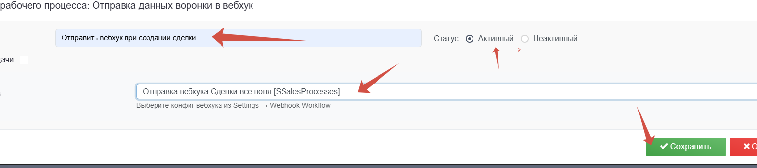 Теперь добавим вебхук при закрытии сделки успешно