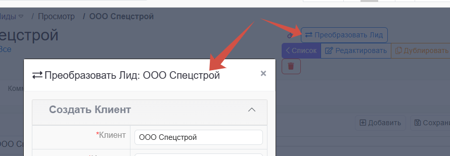 - в лиде есть кнопка преобразовать лид это создаст клиента