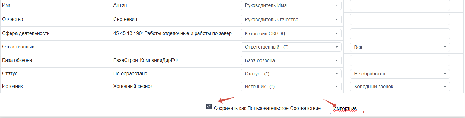 - возьмите базу данных конкретную под целевую аудиторию (когда у вас уже есть идея или проверенная практика что на эту целевую аудиторию будет полезен ваш продукт и у вас есть сценарий захода с предложением и список типовых возражений) и добавьтенедостающиеполя.самоеважное: Название, Ответственный(можно пусто), Название выборки , Стаутс и Источник. Это обязательные поля при импорте