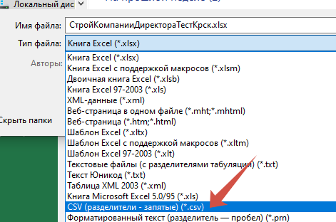 - Нажмите Сохранить как... и выбирайте CSV