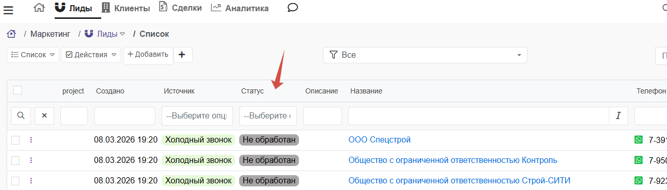 - Лиды появятся в списке