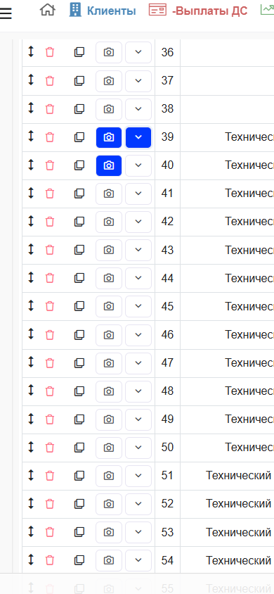 Кнопки действий по строке
